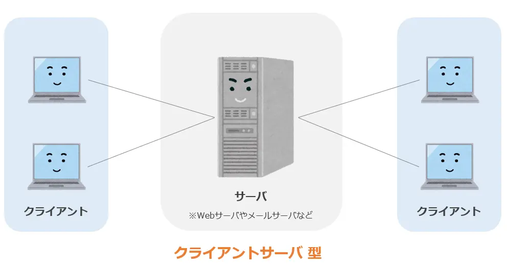 - クライアント: 利用者が操作するPCやスマートフォンなど。「顧客」のようにサービスを要求する側。