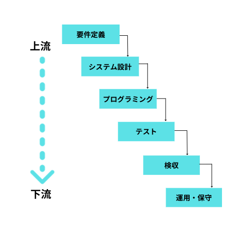 - 原則として後戻りしないため、途中で仕様変更が発生すると手戻りが大きく、困難になる。