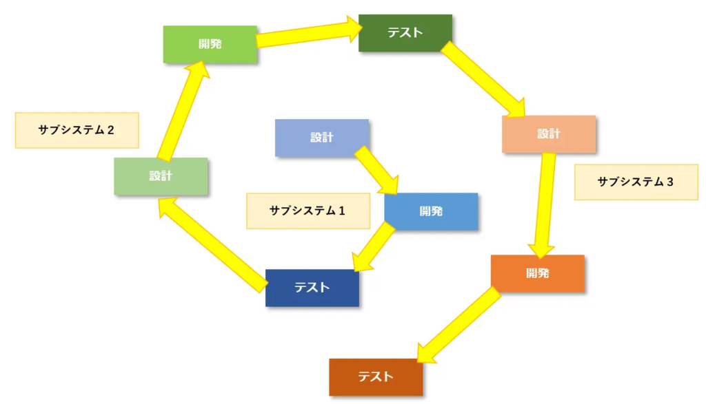 - 機能単位での開発: システム全体を機能の集合体とみなし、優先度の高いものから開発します。