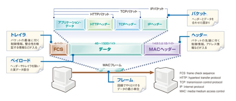 インターネットなどの通信ネットワークで送受信される、データを小さく分割した「小包」の単位です。画像参照:https://xtech.nikkei.com/it/article/COLUMN/20060320/232896/