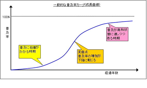 - S字カーブ: 時間(横軸)の経過とともに個体数(縦軸)が増加する様子が、アルファベットのSに似た形になる。