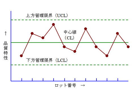 - 判定基準: データ(点)がUCL・LCLの間にあり、ランダムに分布していれば安定状態。限界線から外れる、または一定の傾向が見られる場合は「異常」と判断する。