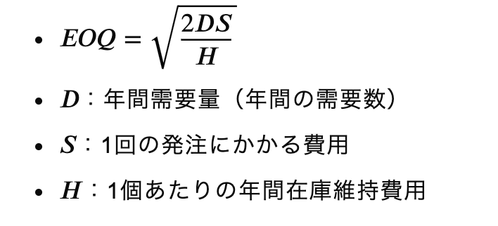 - 別名:「経済的ロットサイズ」とも呼ばれます。